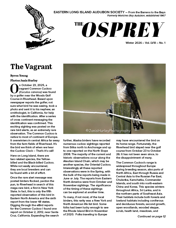 Eastern Long Island Audubon Society is a Chapter of the National Audubon Society serving the communiites from Patchogue to Montauk along the South Shore of Long Island, including western Riverhead, Brookhaven, Southampton and East Hampton.